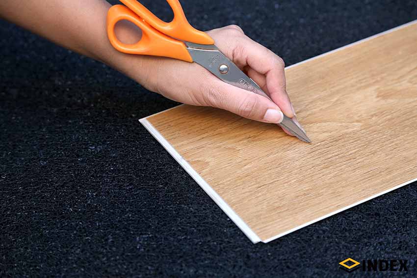 กระเบื้องยางจากอินเด็กซ์ รุ่น GLUER แบบมีกาวในตัว สามารถลอกแผ่นกาวด้านหลังออก แล้วปูทับพื้นเดิมได้เลยทันที