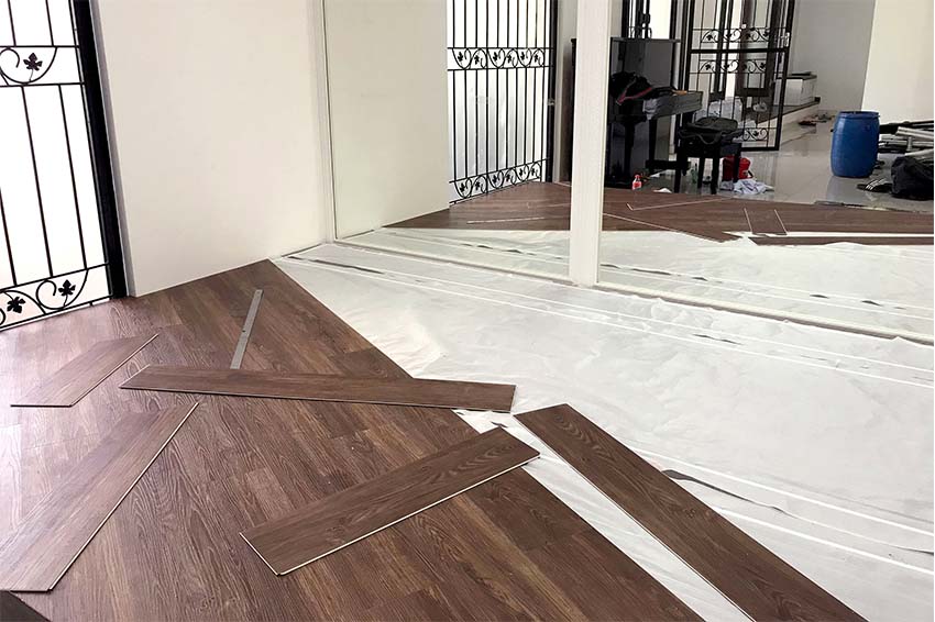 ติดตั้งกระเบื้องยางบ้านลูกค้า กระเบื้องยางคลิ๊กล๊อค รุ่น PERMO สี CL02