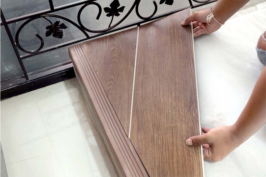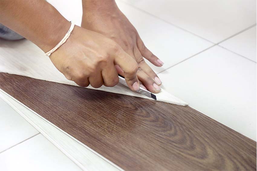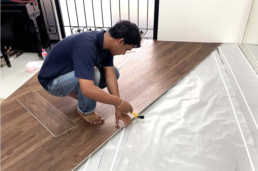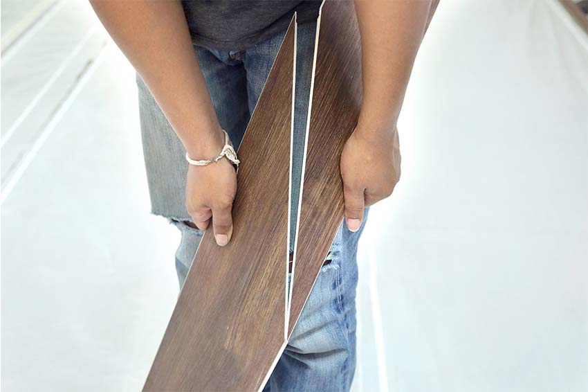 กระเบื้องยางรุ่น PERMO หรือแบบคลิ๊กล๊อค สามารถใช้คัตเตอร์กรีดและหักตามส่วนที่เราต้องการได้
