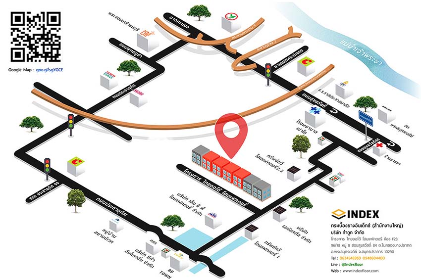 Showroom และโกดังสินค้า อินเด็กซ์ฟลอร์ ( สาขาสุขสวัสดิ์) ตั้งอยู่ที่ โครงการ ไทยออโต้ โฮมแฟคตอรี่ ห้อง F23 96/78 หมู่ 8 ซอยสุขสวัสดิ์ 84 ในคลองบางปลากด พระสมุทรเจดีย์ สมุทรปราการ 10290