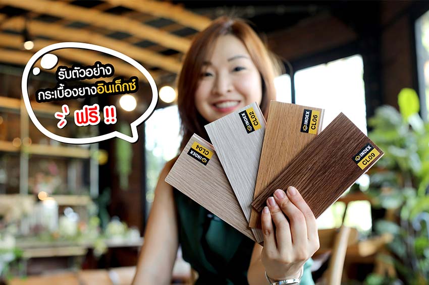 หากยังตัดสินใจเลือกรุ่นและสีกระเบื้องยางไม่ถูกนั้น เราก็มีตัวอย่างกระเบื้องยางอินเด็กซ์ ให้ลูกค้าได้เอากลับไปเลือกที่บ้าน ฟรีๆ ! อีกด้วยนะคะ หรือถ้าลูกค้าท่านใดสนใจ แต่มาเยี่ยมชมโชว์รูมเราไม่ได้นั้น เราก็มีบริการส่งตัวอย่างกระเบื้องยางอินเด็กซ์ ให้ลูกค้าถึงบ้านแบบฟรี ๆ ได้เช่นกันค่ะ เพียงแค่คลิ๊กลิ้งด้านล่าง และกรอกที่อยู่จัดส่ง ก็รอรับตัวอย่างกระเบื้องยางอินเด็กซ์หน้าบ้านได้เลย !!